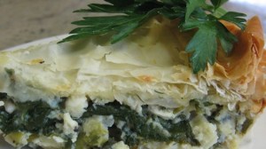 Try spinach in Spanikopita (Greek Spinach Pie). This dish is a really rich pie stuffed with spinach, onions, cheeses and herbs that are all enfolded in crispy, flaky phyllo dough. It takes a bit to prepare but it is well worth it! Excellent served for brunch. The garlic, onions, parsley and spinach are all available fresh and local at the Farmers Market. Sometimes goat feta cheese is available too! I hope to see you there this Saturday!